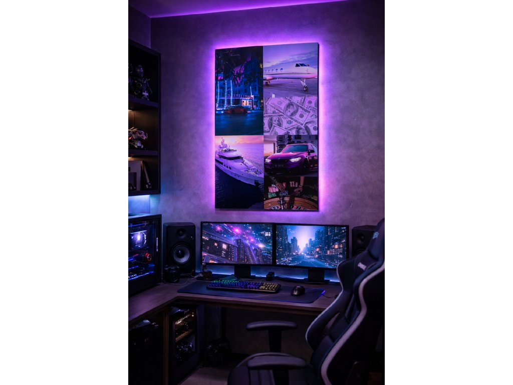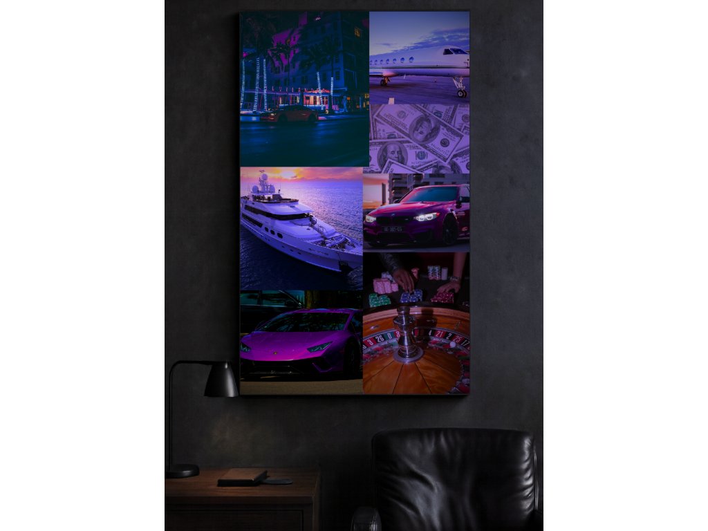 Neonově fialové a modré tóny ve stylu Miami Vice . Připomínka toho, že život se má žít naplno, ať už jste v Monaku, nebo ve svém obýváku.🔮👾